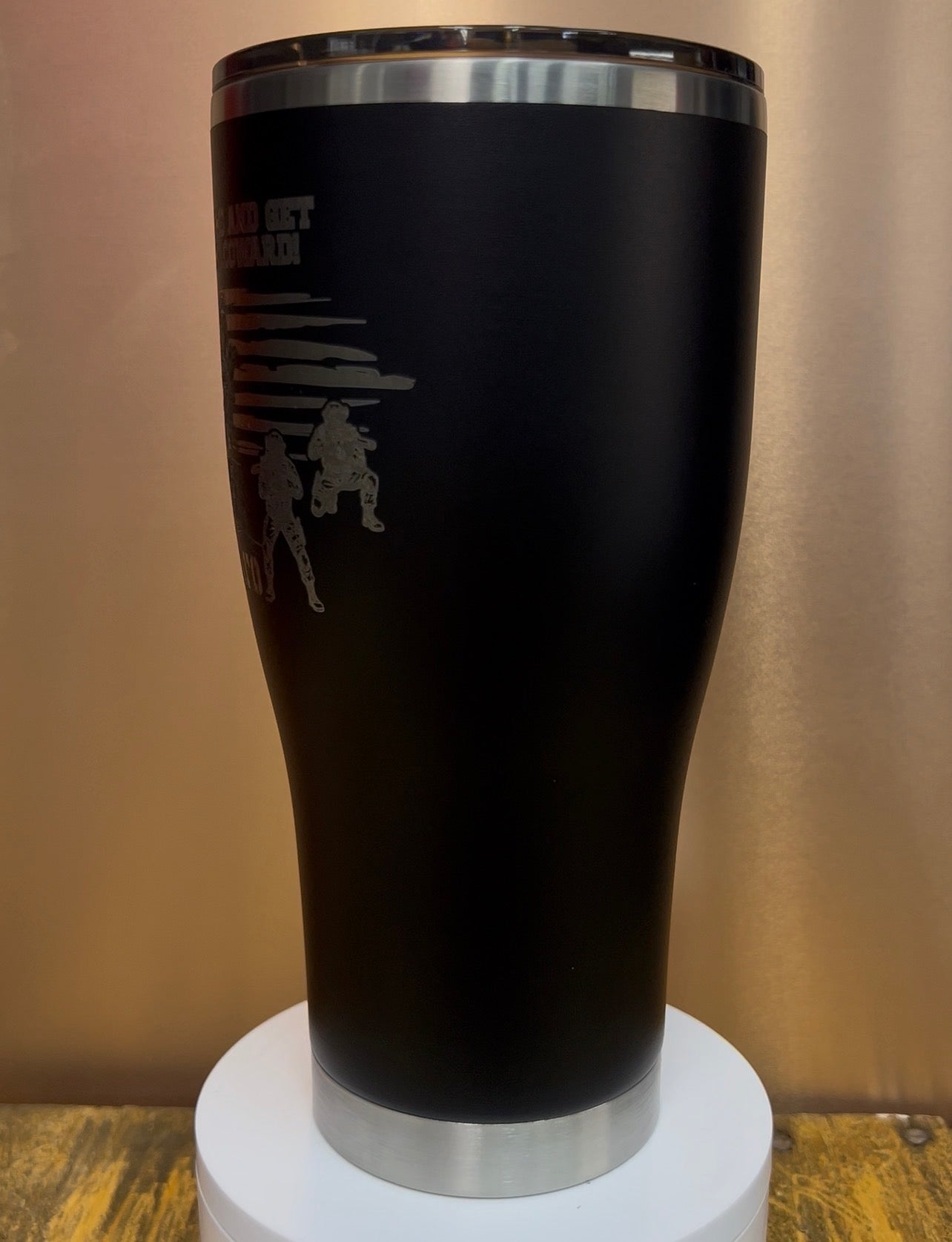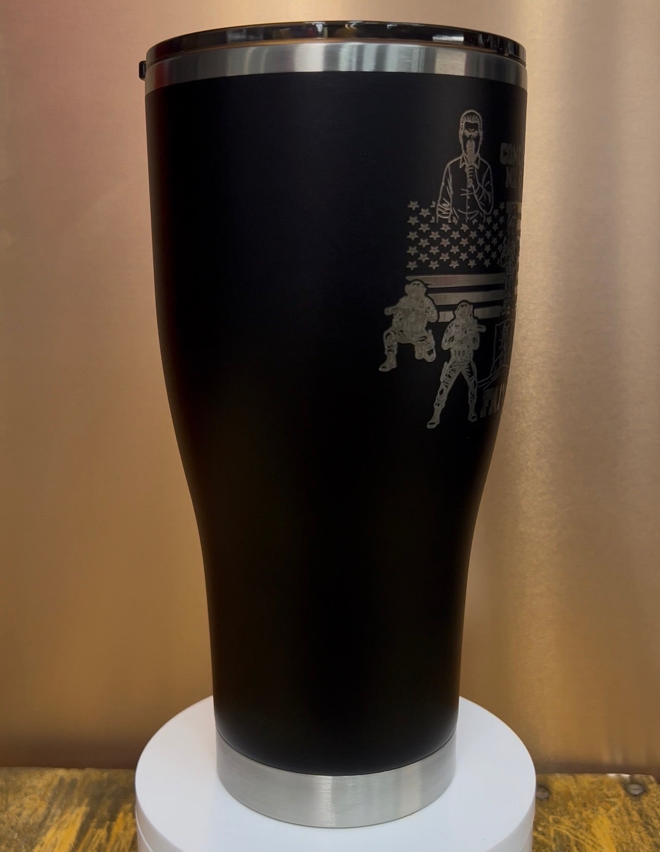 This custom 30oz Powder Coated Modern Curve Tumbler immortalizes President Trump's daring raid capturing Venezuelan leader Nicolás Maduro after his bold "Come and get me, coward!" challenge. Laser-etched with a defiant Trump figure amid U.S. flags, tactical operators hauling the captured Maduro, and "FAFO" lettering, it celebrates the White House's triumphant January 2026 operation.